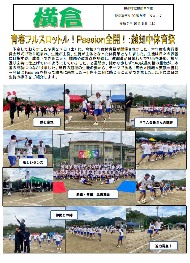 校長室便り No.5~6を遅くなりましたが掲載いたしました。画像をクリックするとpdfで開きます。