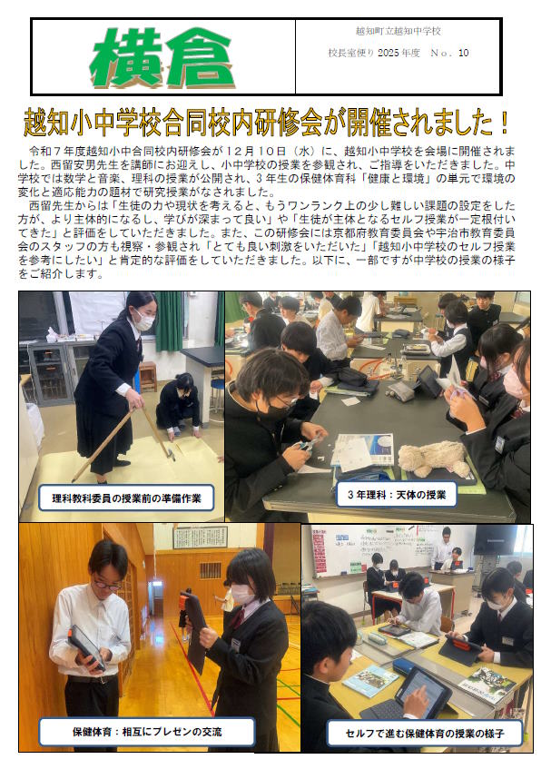 校長室便り No.9~10を掲載いたしました。画像をクリックするとpdfで開きます。